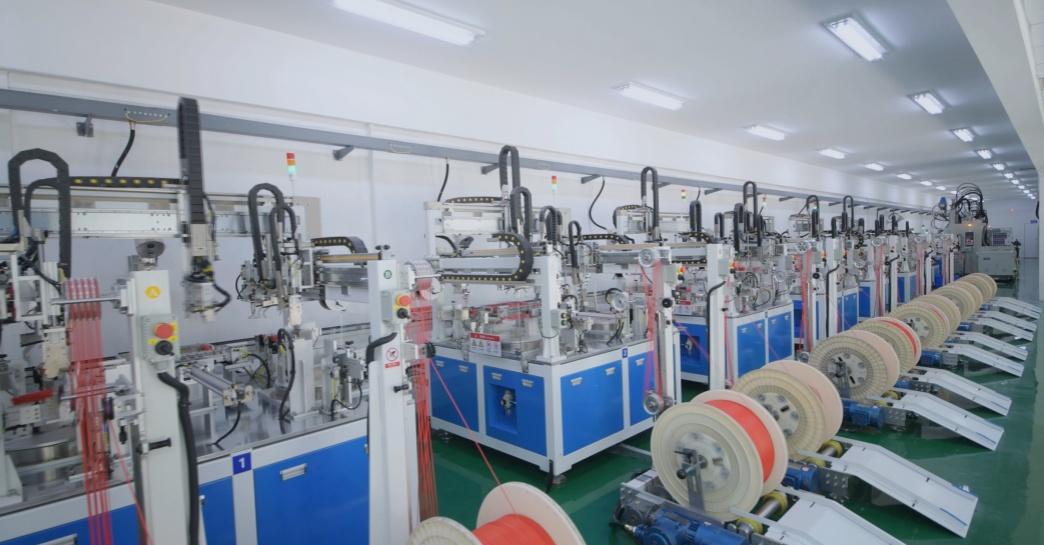 The fully automatic production line for electronic detonators has functions such as detonator foot wire processing, bayonet plug injection molding, electronic ignition component welding, product assembly, bagging, boxing, product information generation an