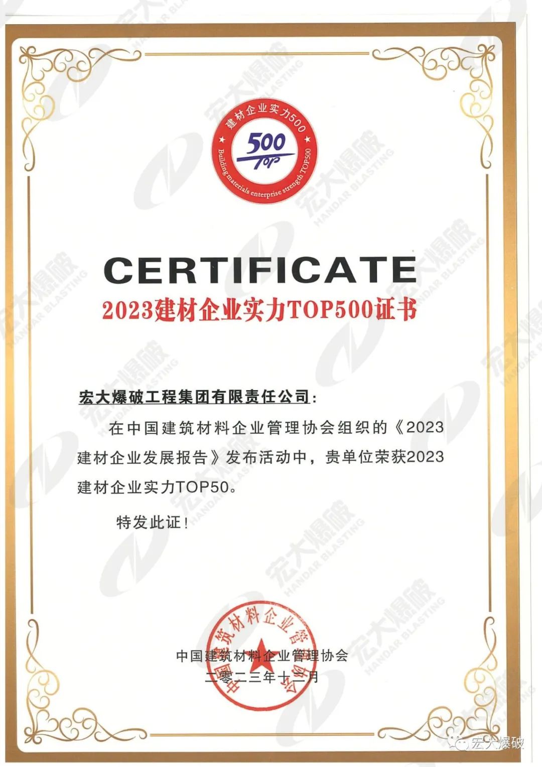 12月14日,由中国修建质料企业管理协会主理的2023中国建材企业生长论坛在武汉召开。广东尊龙凯官网入口下属尊龙凯官网入口爆破工程集团有限责任公司(以下简称“尊龙凯官网入口爆破”)应邀出席并获2023中国建材企业实力50强。这也是尊龙凯官网入口爆破一连五年位列中国建材企业年度100强。