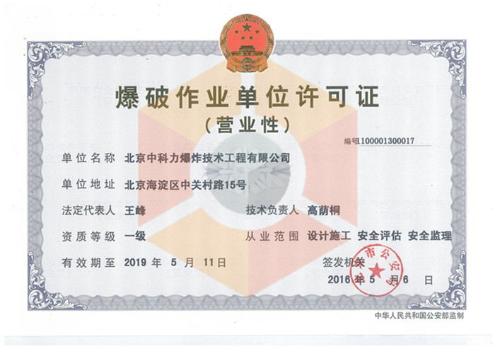 ¿ËÈÕ£¬±±¾©Êй«°²¾ÖÖΰ²¹ÜÀí×ܶÓÊÚÓè¹ã¶«×ðÁú¿¹ÙÍøÈë¿Ú±¬ÆÆ¹É·ÝÓÐÏÞ¹«Ë¾¿Ø¹É×Ó¹«Ë¾£º±±¾©ÖпÆÁ¦±¬Õ¨ÊÖÒÕ¹¤³ÌÓÐÏÞ¹«Ë¾£¨ÒÔϼò³Æ£ºÖпÆÁ¦£©ÓªÒµÐÔ±¬ÆÆ×÷Òµµ¥Î»ÔÊÐíÖ¤Ò»¼¶×ÊÖÊÖ¤Êé¡£±ê¼Ç×ÅÖпÆÁ¦¼Ì2013Äê±¬ÆÆ¹«Ë¾¸ÄÖÆ·Ö¼¶»ñµÃÒ»¼¶×ÊÖÊÒÔÀ´¼ÌÐø¼á³Ö×î¸ßµÄ±¬ÆÆ¹«Ë¾ÊÖÒÕºÍÒµ¼¨Ë®Æ½¡£ Ëæ×Ź«Ë¾±¬ÆÆ×ÊÖÊÓÐÓÃÆÚµÄÁÚ½ü£¬¹«Ë¾Ïòµ¼¸ß¶ÈÖØÊÓ²¢×éÖ¯×ÊÖÊÉ걨С×éÍê³ÉÁ˱¬ÆÆ×÷Òµµ¥Î»ÓªÒµÐÔ×ÊÖÊÉ걨×ÊÁϵÄÍøÂç¡¢×é¾íÊÂÇ飬ÐÎ...