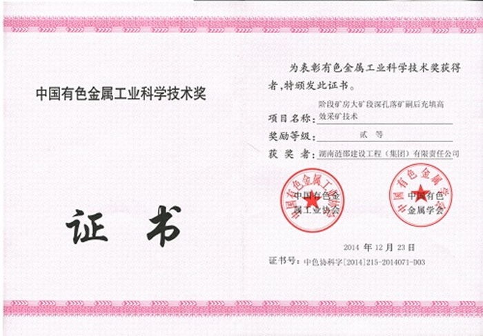 克日,广东尊龙凯官网入口爆破股份有限公司下属子公司:湖南涟邵建设工程(集团)有限责任公司(以下简称:涟邵建工)收到中国有色金属工业协会、中国有色金属学会揭晓的中国有色金属工业科学手艺奖证书,涟邵建工主导完成的“阶段矿房大矿段深孔落矿嗣后充填高效采矿手艺”科技效果荣获二等奖。 2013年,涟邵建工中标临沂会宝岭铁矿有限公司采矿工程,为实现工期要求,尽快投产出矿,经...